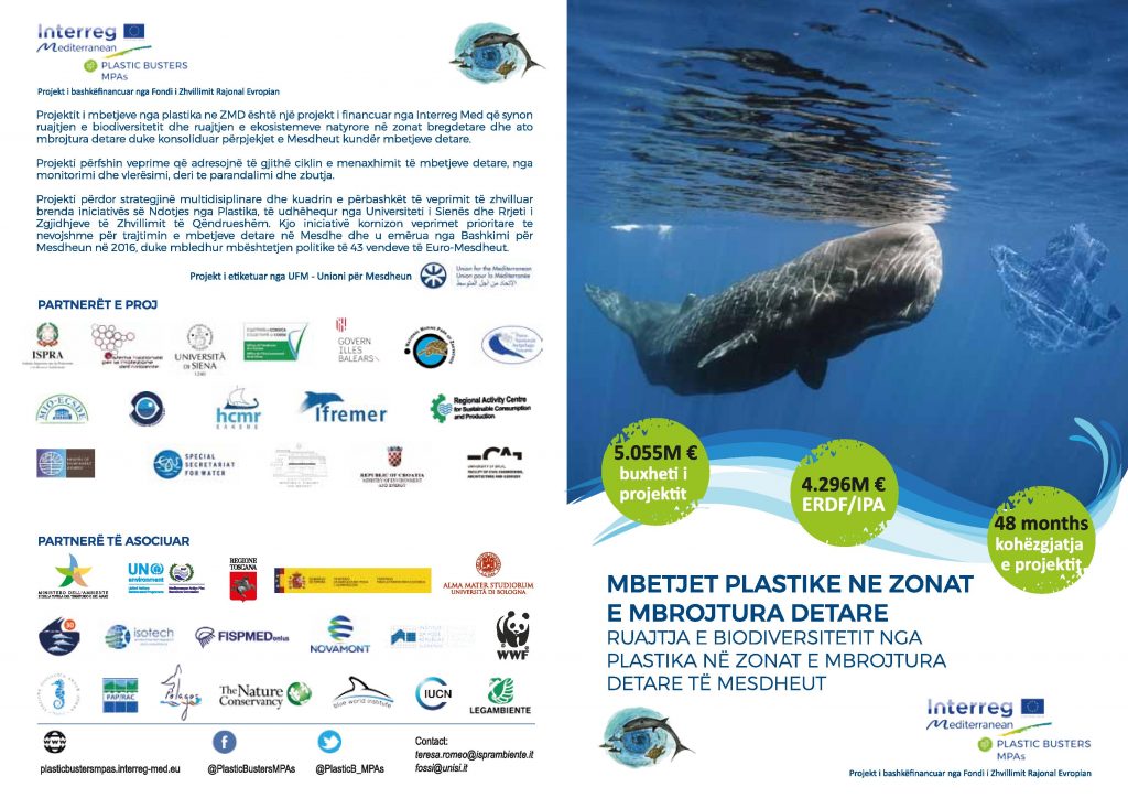 Projekti Mbetjet Plastike për Zonat e Mbrojtura Detare është një projekt i financuar nga Interreg Med me qëllim që të kontribuojë në ruajtjen e biodiversitetit dhe ruajtjen e ekosistemeve natyrore në zonat pelagjike dhe bregdetare të mbrojtura, duke konsoliduar përpjekjet e Mesdheut kundër mbeturinave detare.