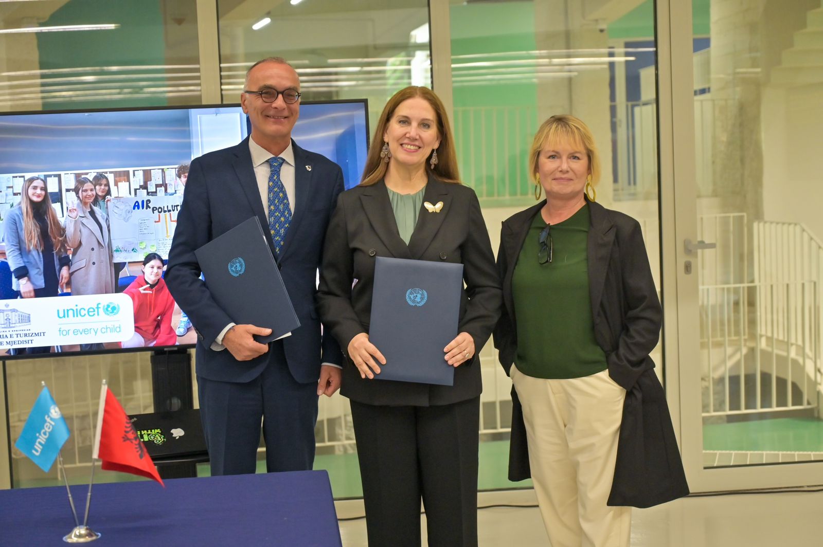 Ministria e Turizmit dhe Mjedisit dhe UNICEF-in nënshkruan në Tiranë “Deklaratën për Fëmijët dhe të Rinjtë dhe Veprimet për Klimën.” Ky është angazhimi i parë në llojin e tij për të përshpejtuar politikat dhe veprimet klimatike gjithëpërfshirëse, të përqendruara te fëmijët dhe të rinjtë në nivel kombëtar.